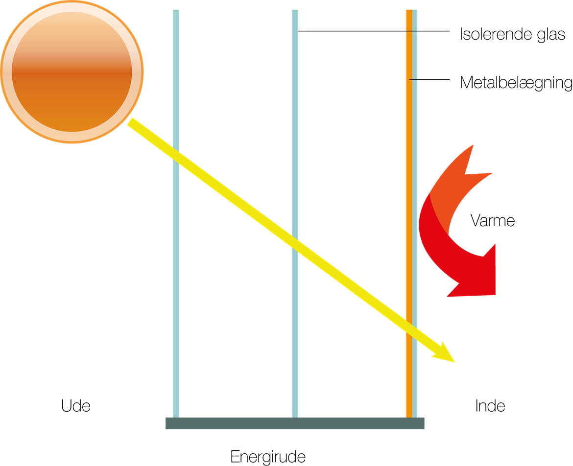 Mange huse har tolags termoruder, men de er ikke nær så gode til at holde på varmen som energiruder. Det skyldes især, at det ene glas i energiruder er forsynet med en tynd, usynlig metalbelægning. Den sidder oftest på den ene side af det inderste glas, der vender ind mod rudens hulrum. Metalbelægningen lader solens kortbølgede stråler passere ind i boligen, men reflekterer den langbølgede varmestråling, der kommer indefra.