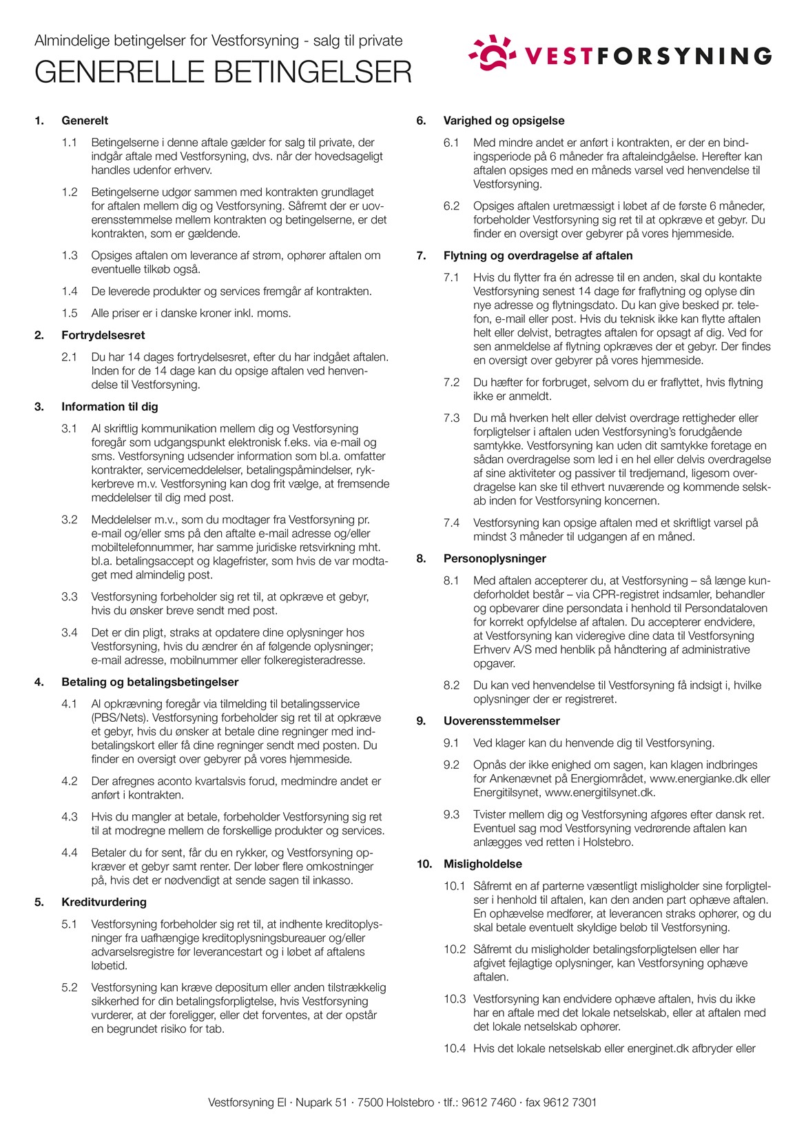 Her kan du finde leveringsbestemmelser for Vestforsyning Varme A/S:
