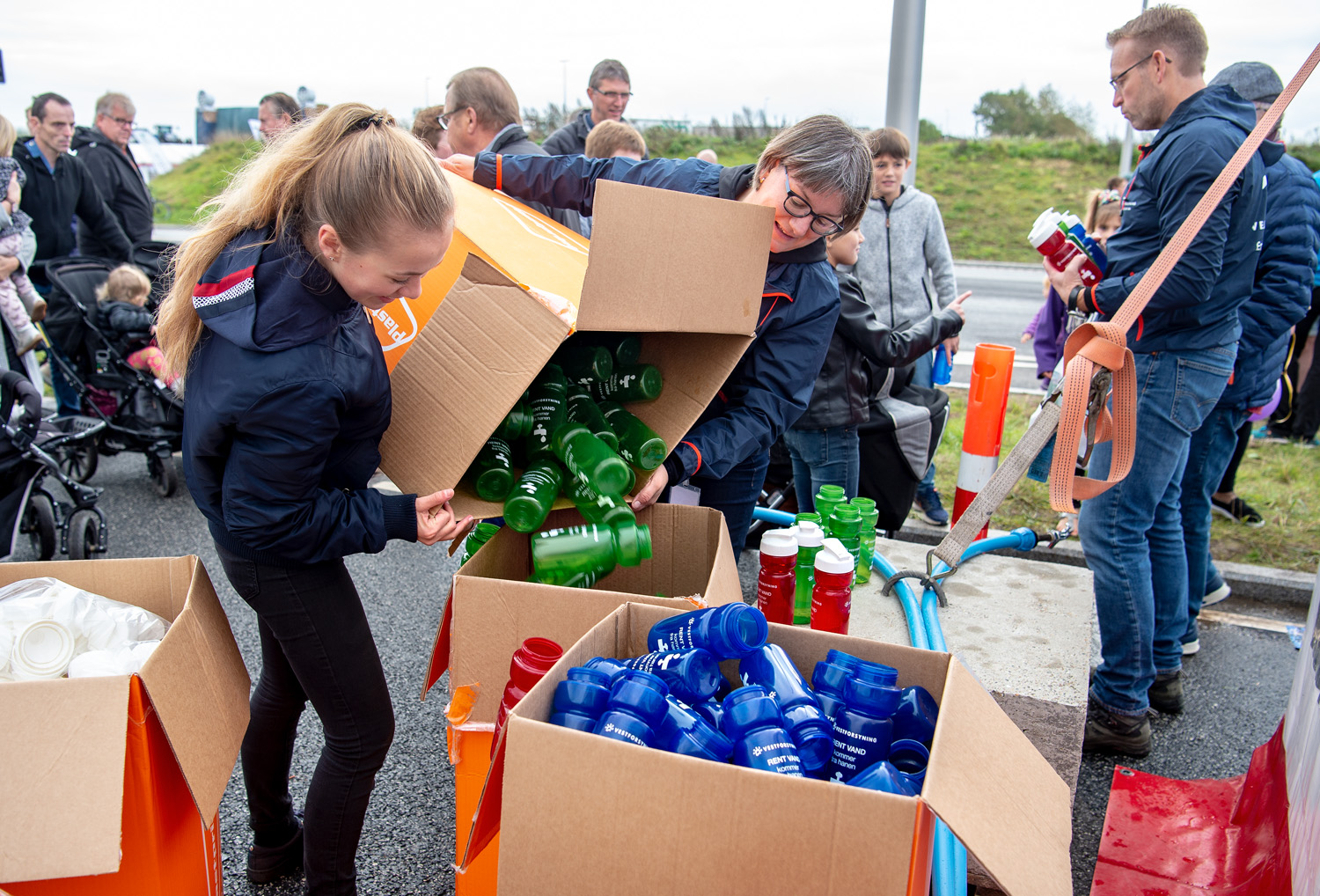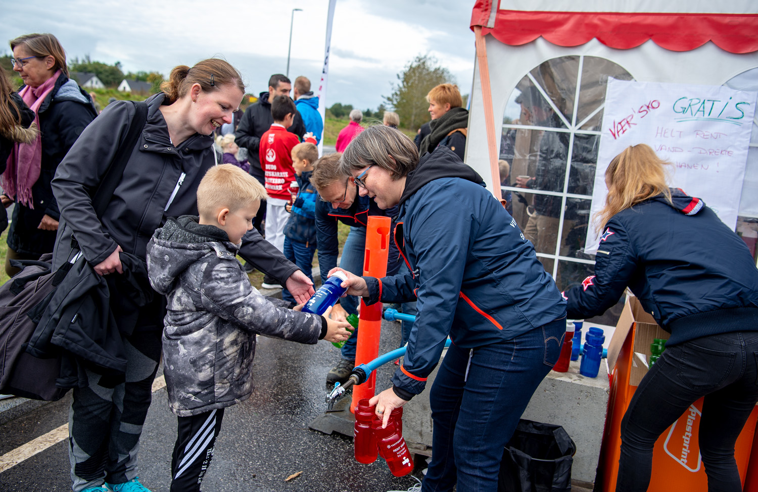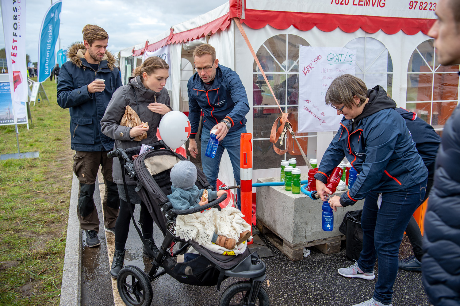 5.000 Vestforsyning-vanddunke med frisk vand fra egen vandforsyning, blev det til. Men der var også mange tørstige sjæle, ikke mindst de flere end 7000 mennesker, som havde tilmeldt sig et af de store motionsløb, sponsoreret af Vestforsyning, så man fik mulighed for at opleve det nye stykke asfalt helt tæt på – enten på cykel, rulleski, rulleskøjter, til fods, i kørestol eller i klapvogn.