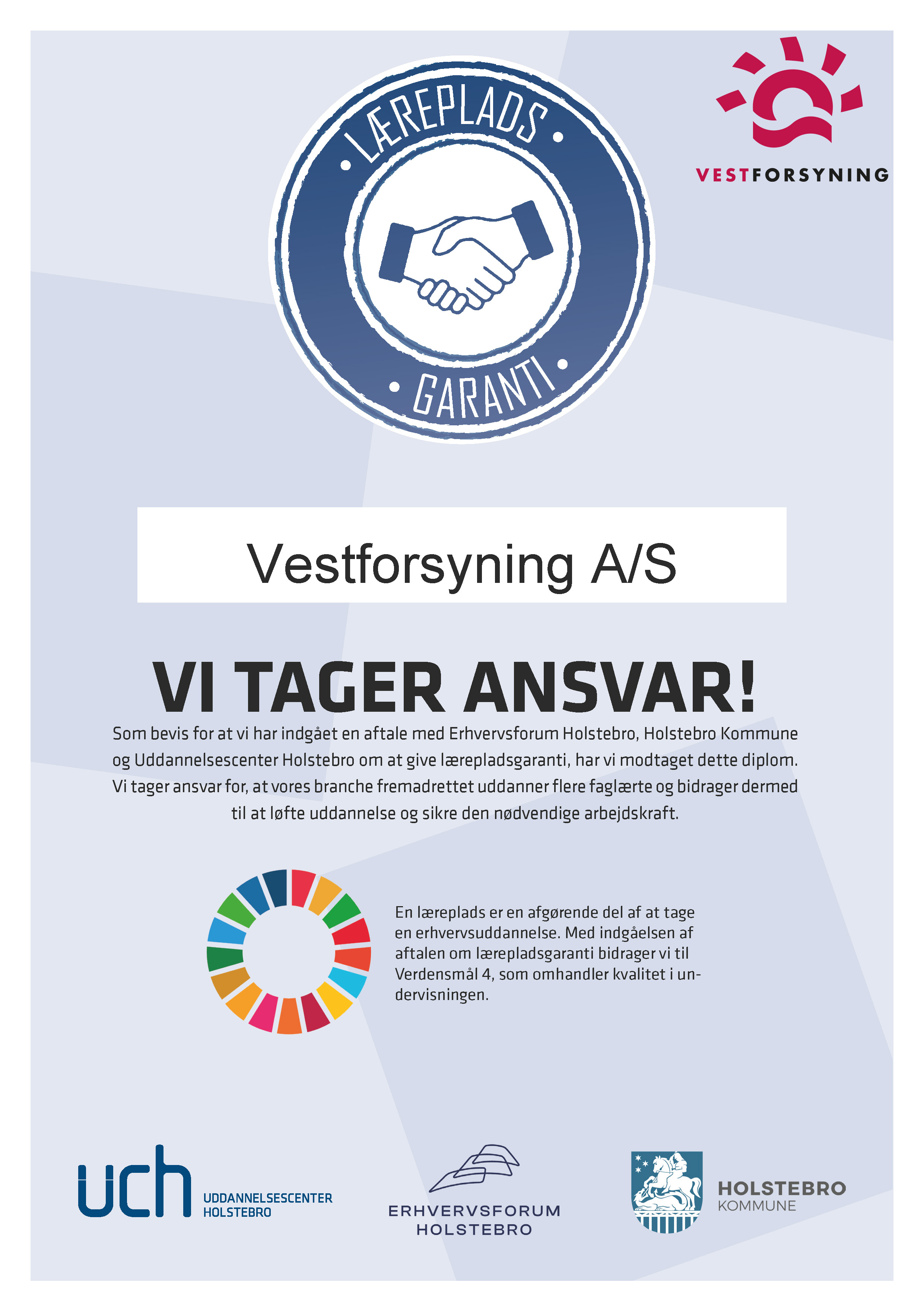 Læs hvad vores elever siger om at være hos VestforsyningVores værdigrundlag er vores pejlemærker for virksomhedskulturen i dagligdagen, og skal være med til at realisere vores mål og visioner. Vi har fire værdier, som er en bærende del af Vestforsynings DNA, og som vi ønsker at bygge virksomheden på. De er fundamentet i vores strategi, måler og visioner.
