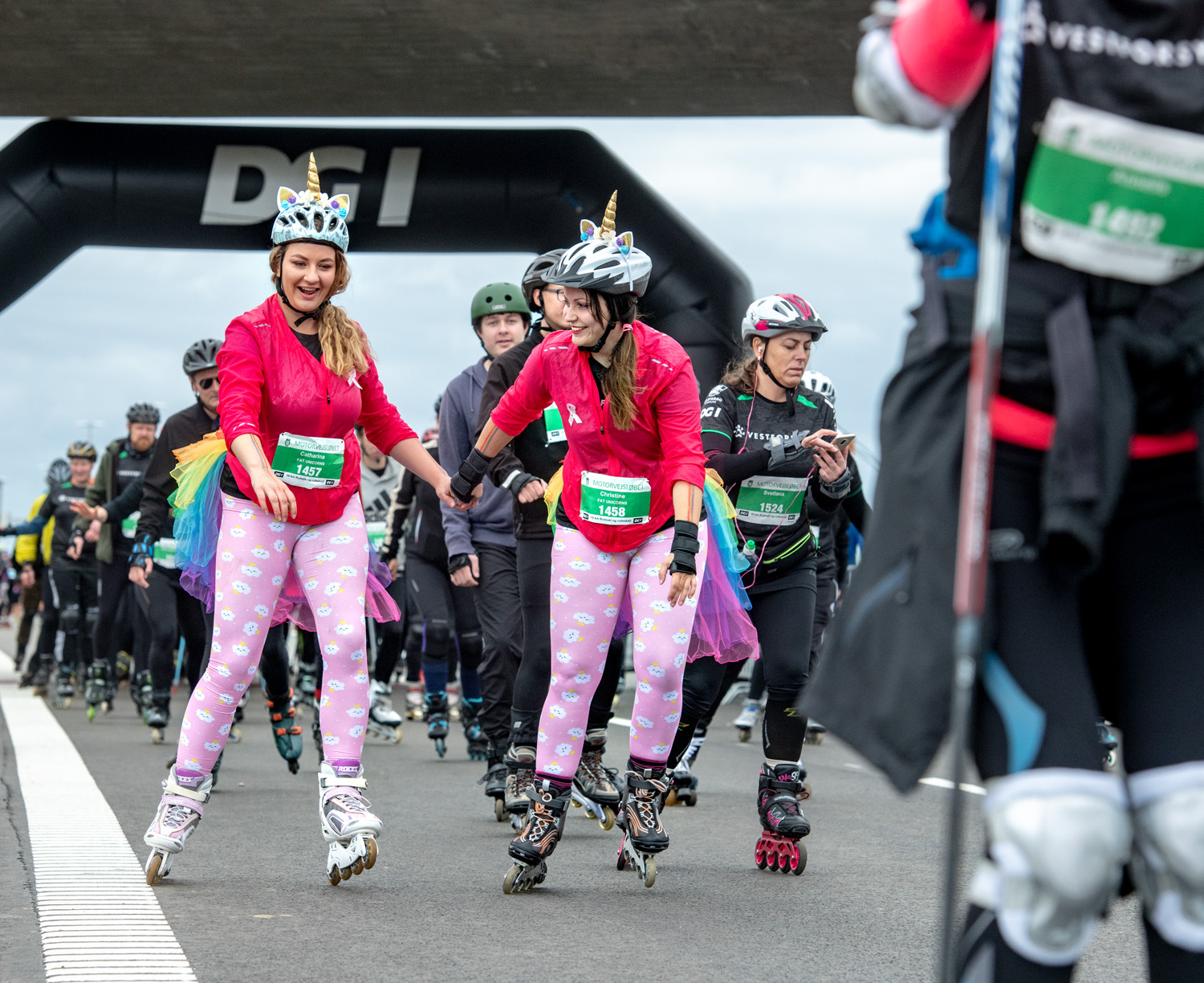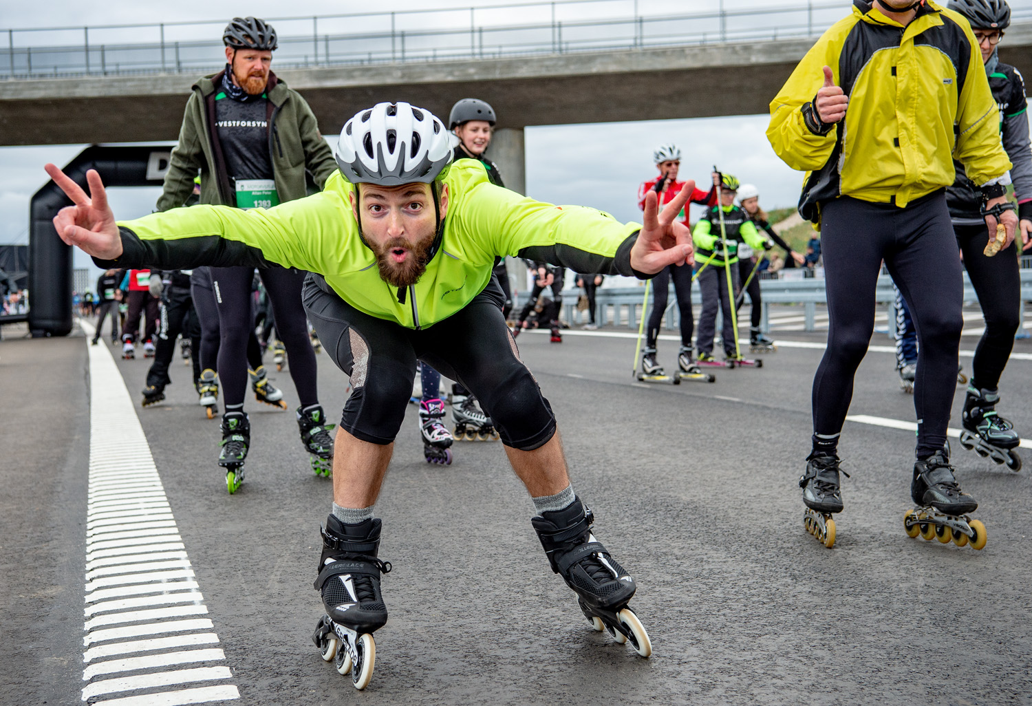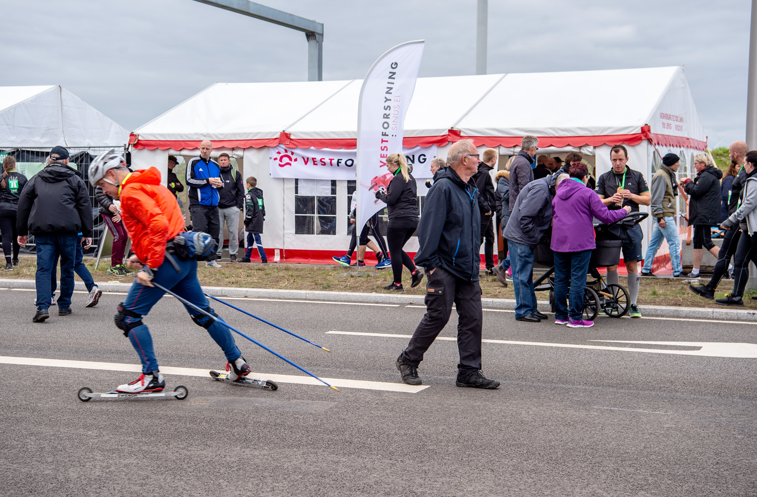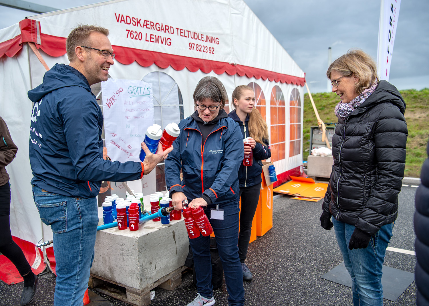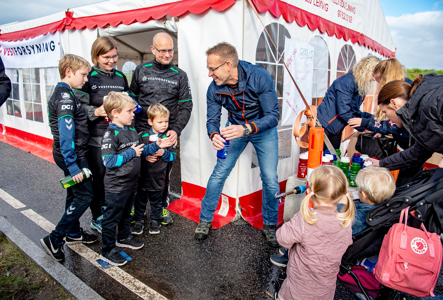 5.000 Vestforsyning-vanddunke med frisk vand fra egen vandforsyning, blev det til. Men der var også mange tørstige sjæle, ikke mindst de flere end 7000 mennesker, som havde tilmeldt sig et af de store motionsløb, sponsoreret af Vestforsyning, så man fik mulighed for at opleve det nye stykke asfalt helt tæt på – enten på cykel, rulleski, rulleskøjter, til fods, i kørestol eller i klapvogn.