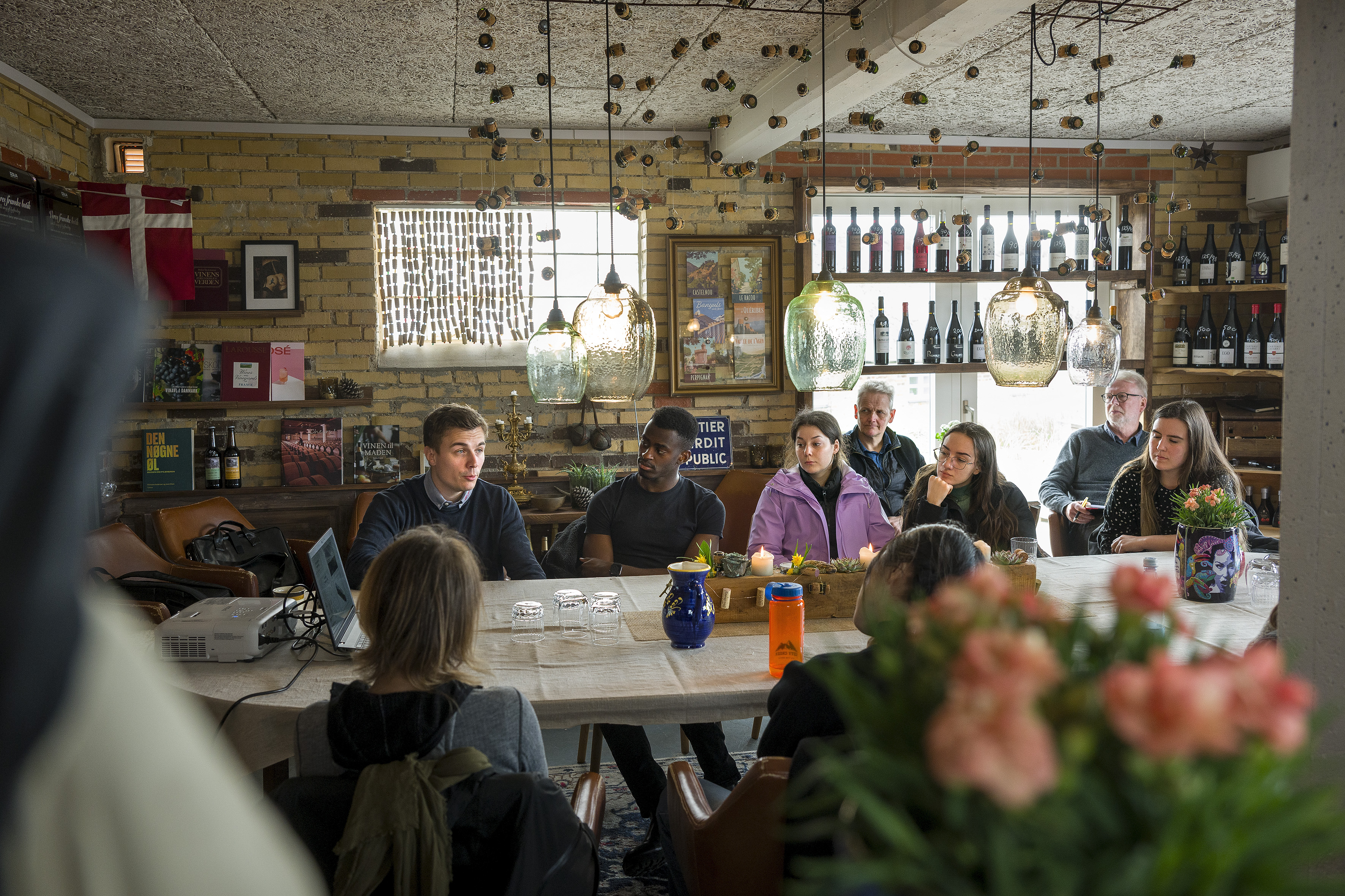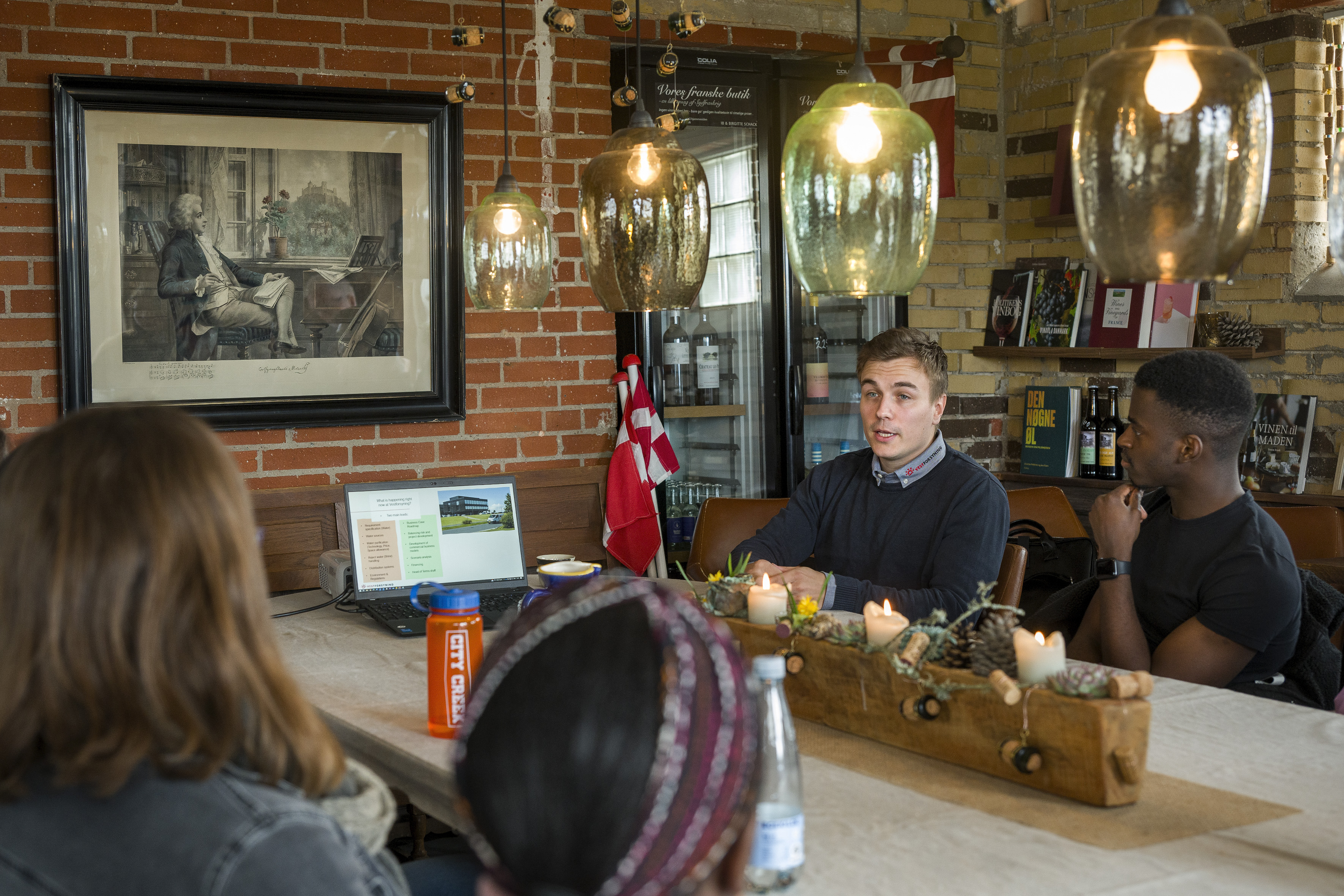 Han fortalte – i ganske intime rammer i den lille feriebys vinbutik – om Vestforsynings arbejde, når det kommer til Power-to-X (PtX) og vedvarende energiprojekter med mere.